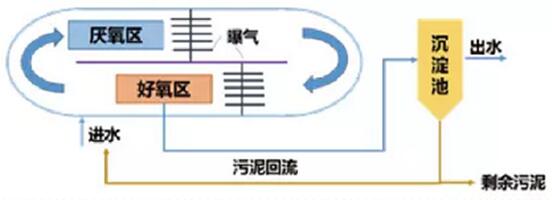 氧沟白天进水曝气,夜间用作沉淀池。活性污泥法相比,其具有处理工艺及构筑物简单、泥龄长、剩