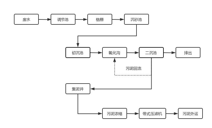 2、该厂使用传统的处理工艺(如下图),之前一直是达标的,近段时间因为产能增大,使得进水磷浓度过高。超过工艺设计