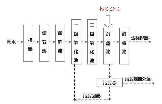 (2)使用除磷剂SP-3,对总磷的去除率高,去除效率快,专门针对生活污总磷超标的处理。