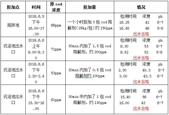 1、联系进行了2天的试,从数据可以得到,cod去除剂的去除率呈线性的关系